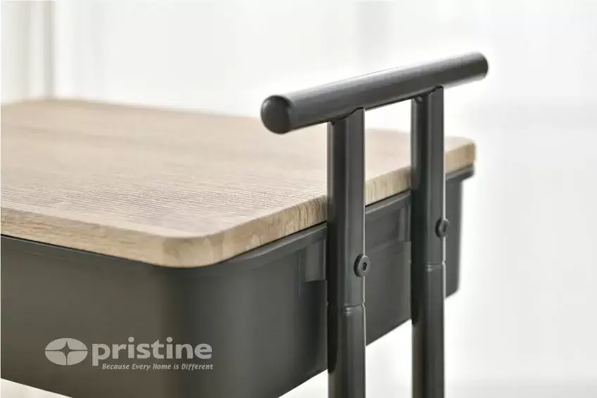 Dank des seitlichen Griffs lässt sich der Wagen leicht bewegen, sodass Sie alles immer griffbereit haben. Kompakt und dennoch robust, eignet er sich sowohl für kleine als auch für große Räume. Praktisch, stilvoll und einfach zu bedienen – ein handliches Gerät, das perfekt in den Alltag passt.